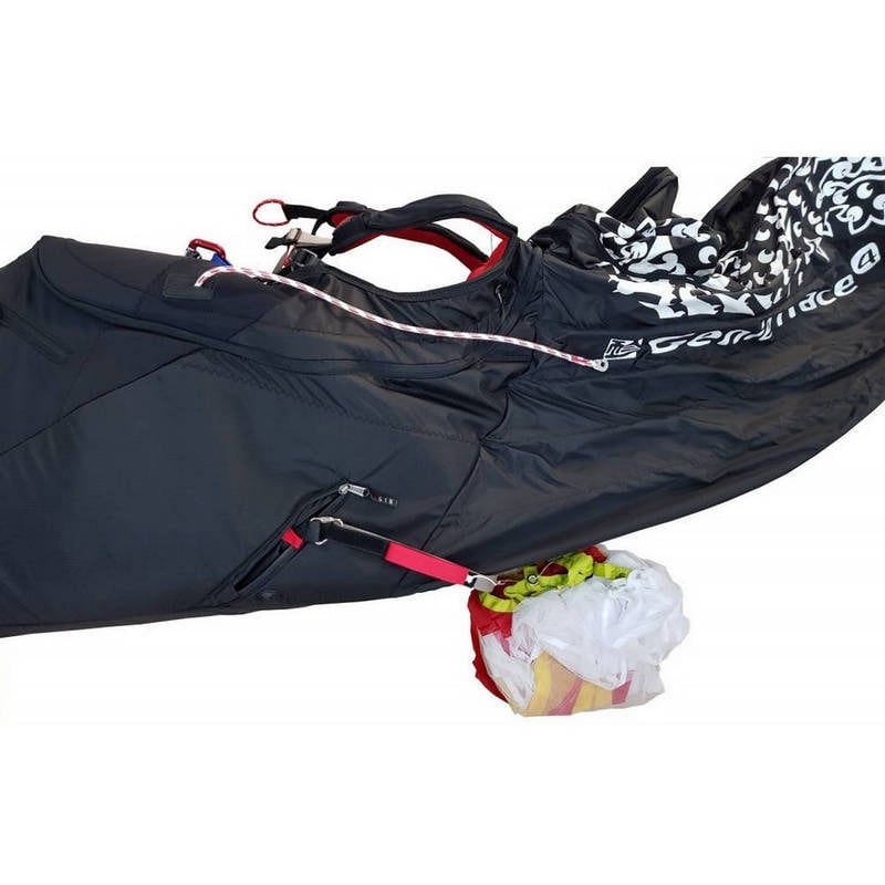 If you find that no pocket of your harness is suitable to store your G-chute, you can connect it to the main karabiners with the optional Gin G-chute Pocket, a special designed deployment bag which attaches to your hang point karabiners.
