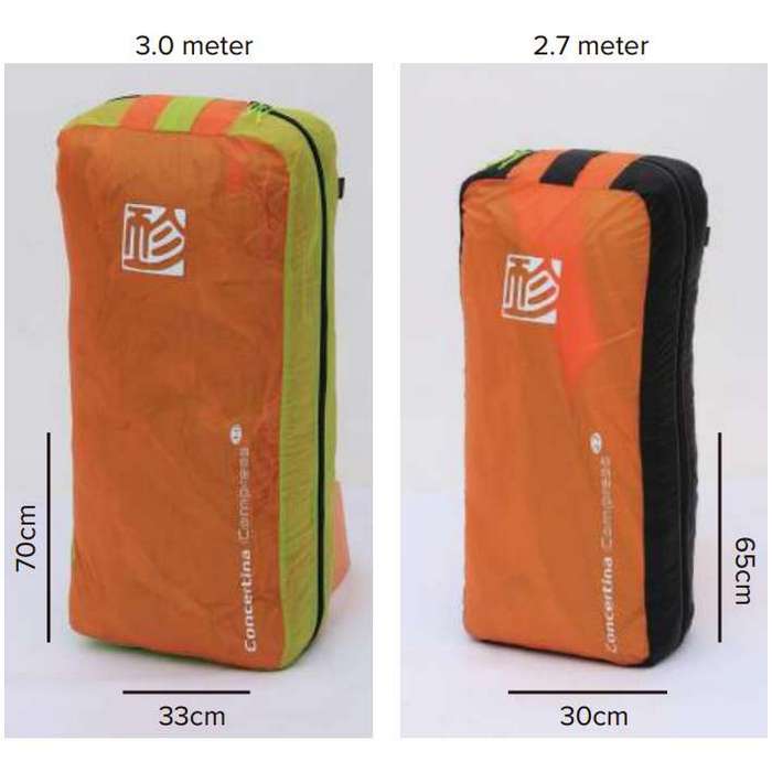 The Concertina Compress Bag works with all lightweight Gin gliders. There are 2 sizes, 3.0 and 2.7 meters, depending on the size and model of the pilots wing and the desired level of compression.