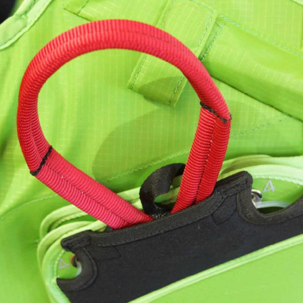 The EASY EXIT is a reliable reserve deployment system, neatly tucked away under the seat of the harness.