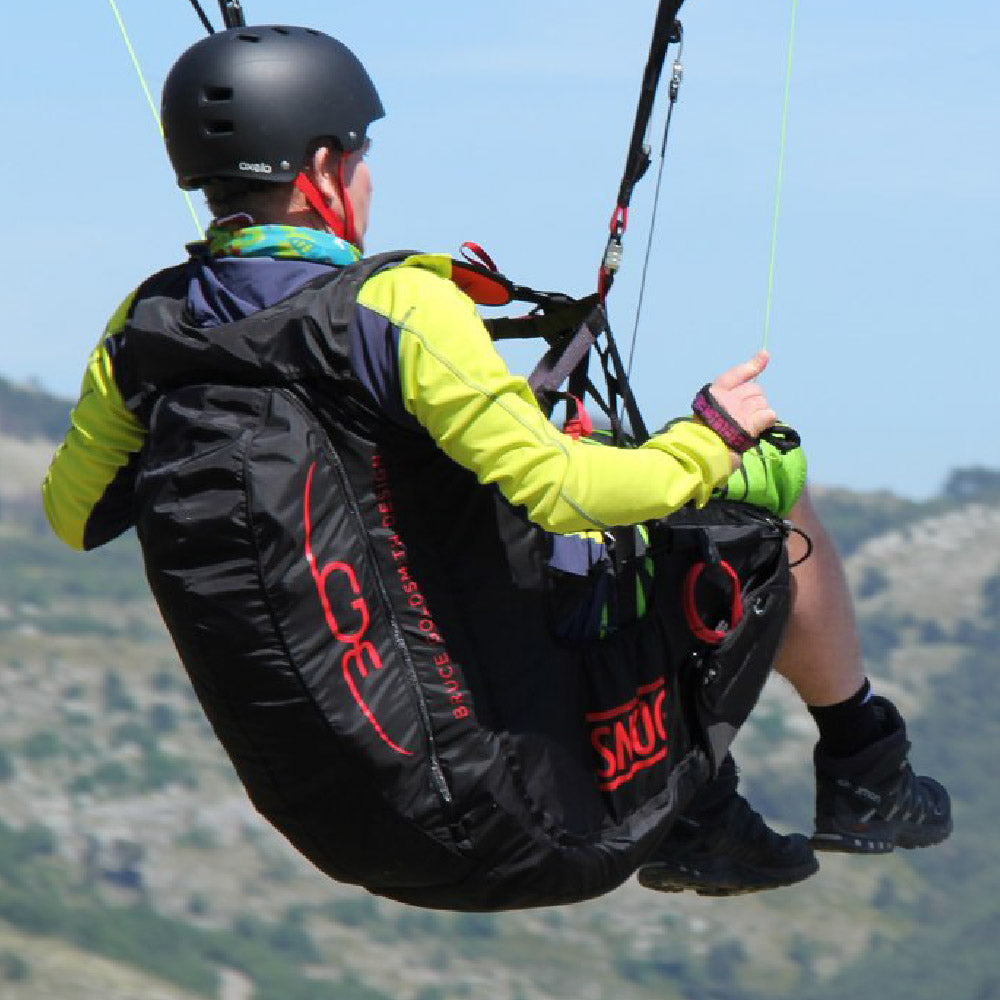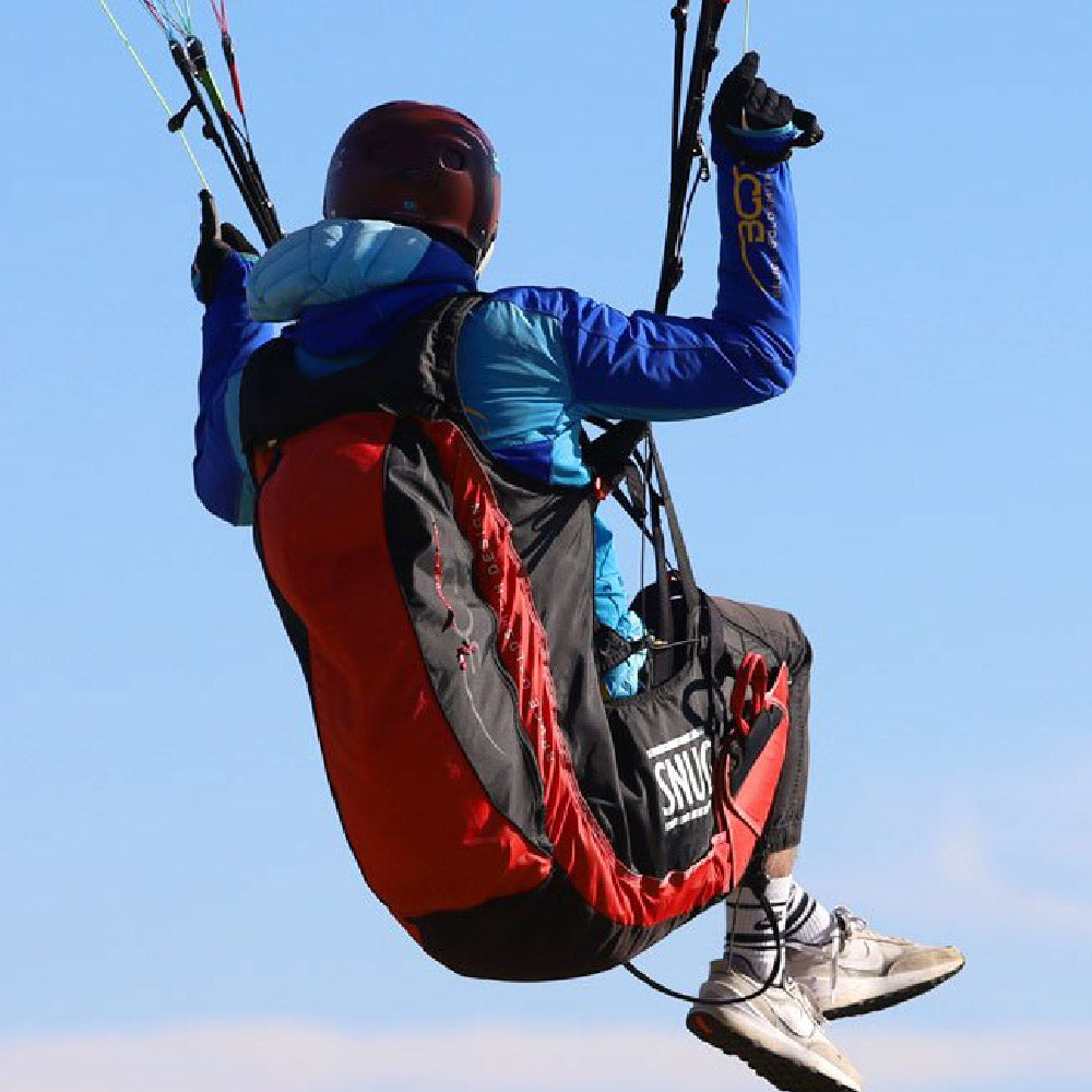I always wanted a harness that I don’t feel. In the beginning, harnesses were divided into two categories: standard harnesses and ABS or cross-braced harnesses. The standard harnesses connected the pilot almost directly to the risers making them very unstable and too radical for occasional pilots. The fully cross-braced harnesses were too restricting; pilots couldn’t feel an imminent collapse coming. The SNUG is my perfect balance; with the semi-cross brace system I feel seamlessly connected to my wing yet stable enough to relax.