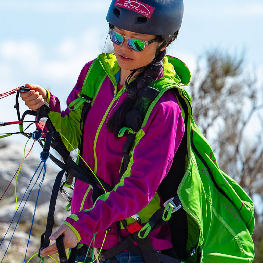 EN-certified lightweight foam back protection helps in the event of mishaps on take-off or in the air.
