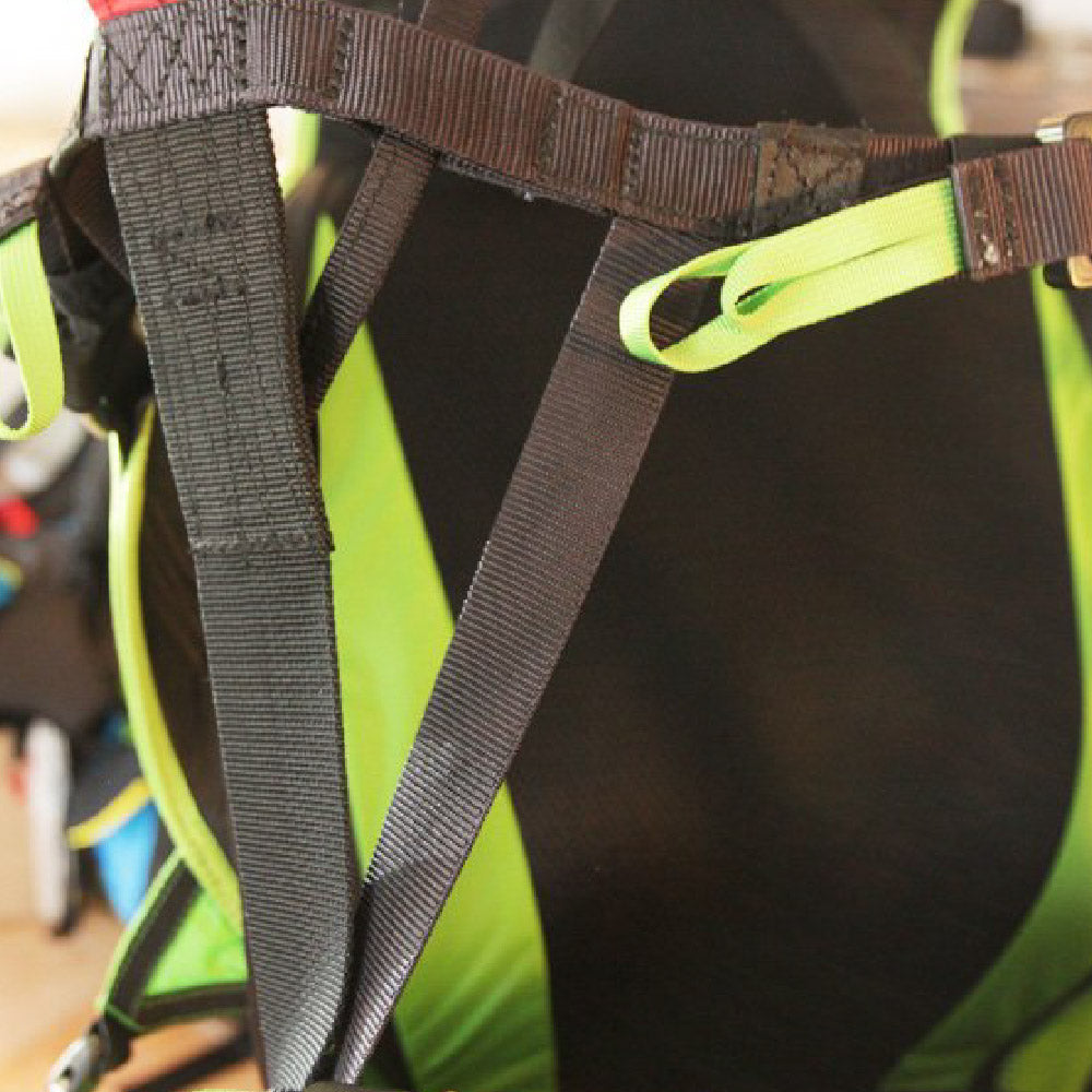 The semi cross-brace system allows the pilot to tighten or loosen the chest strap, adjusting feedback and authority over the harness.