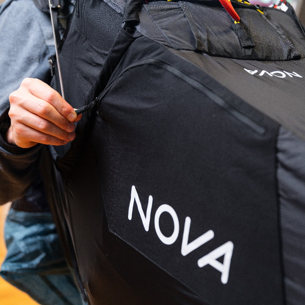 The ARTUS is equipped with a main protector and a back protector. Both are hybrid protectors made of PE foam and a very light tubular structure made of aluminium. This protects the thigh and hip area as well as the back, right up to the thoracic spine. Both protectors can be removed and replaced independently of each other. Nova recommend flying with both protectors. After a hard impact, you should check both protectors for damage or deformation and replace them if necessary.