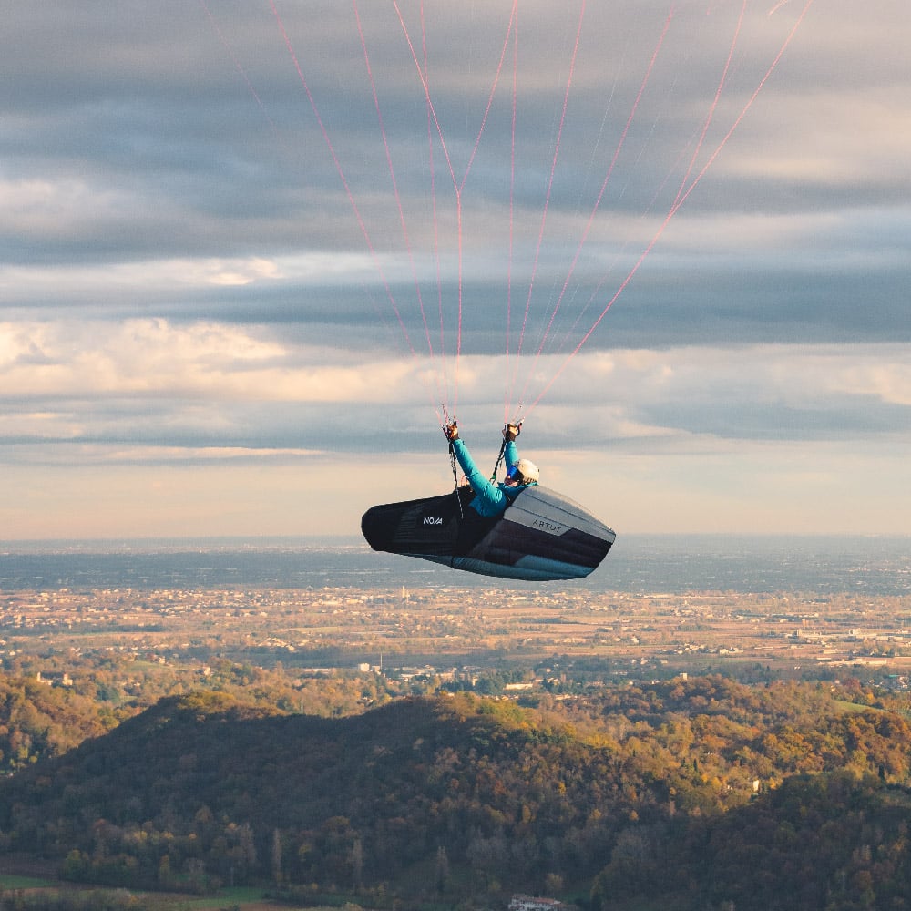 The ARTUS is aimed at pilots who want to fly a very light, safe and high-performance pod harness. You benefit from the high level of comfort and precise handling on long cross-country flights, ambitious hike & fly competitions and also on vol biv tours.