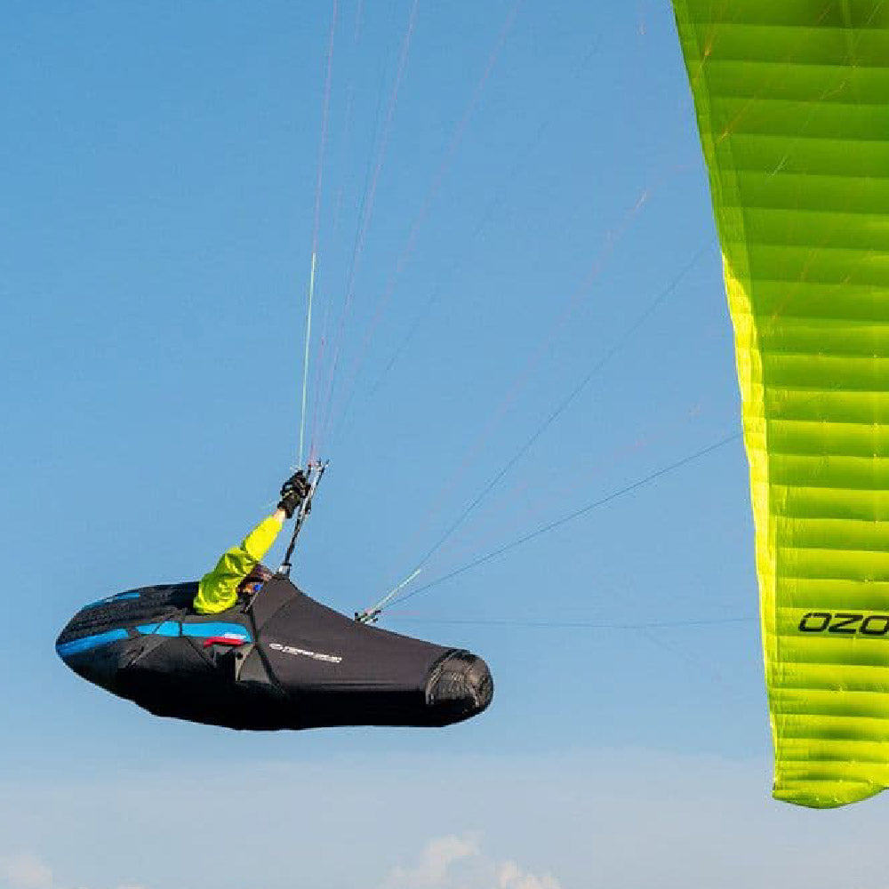 The Forza 2’s rigidity is carefully engineered. The backrest is anatomically designed to support every part of the pilot’s back. Foams of varied thickness and density are arranged for exceptional lumbar comfort. The seat has a small seat plate which provides the ideal level of rigidity and excellent weight shift control, with a support zone that is comfortable to rest in for many hours. A massive protector covers the entire back, and the seat protector is low profile but highly effective.