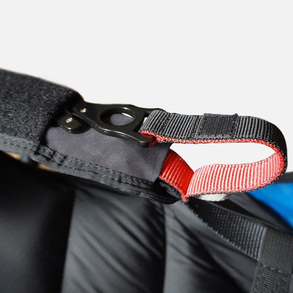 The harness closure has color coded buckles and the pod closure system protects against forgotten leg straps.