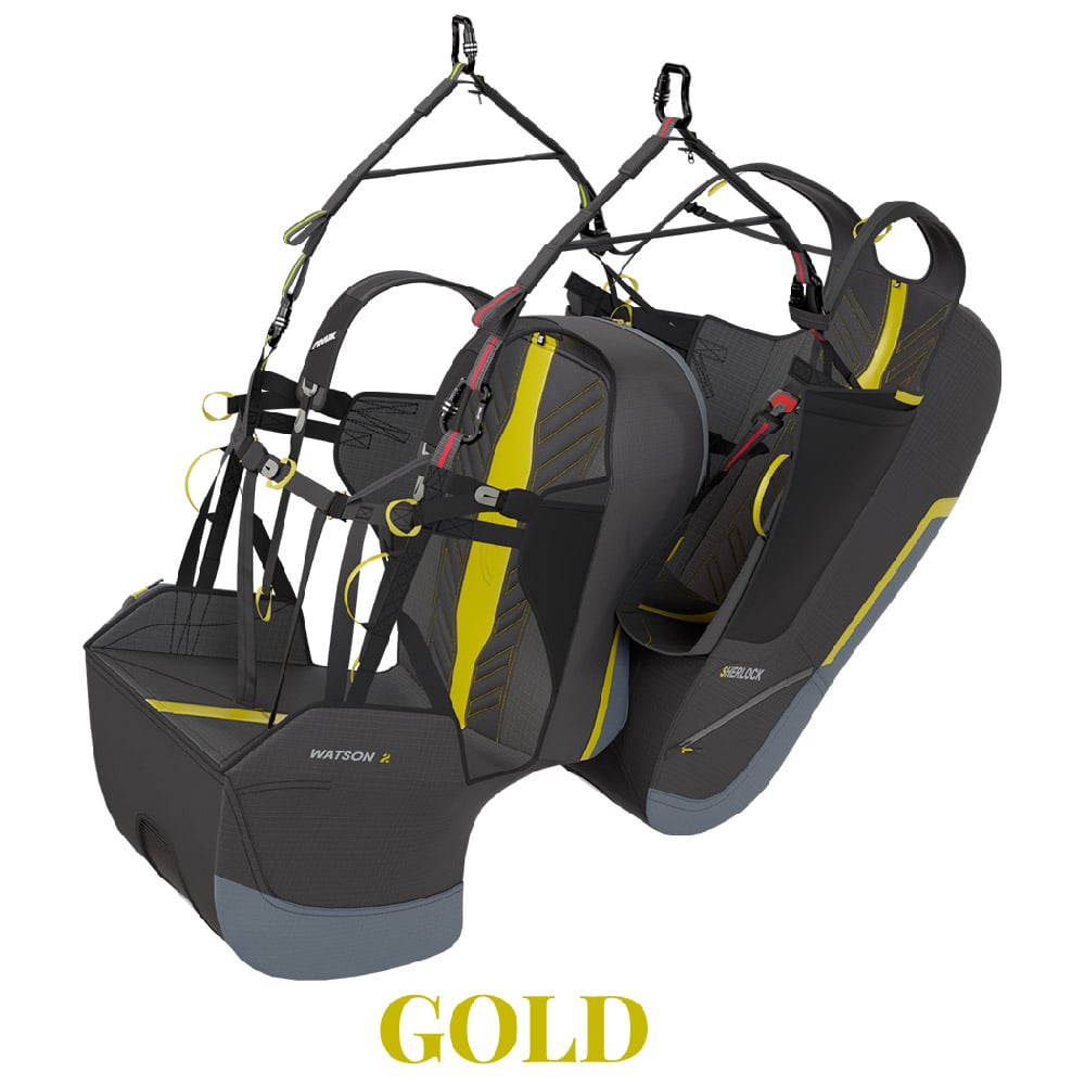 The Watson 2 is an easy-to-use, comfortable and compact harness. Thanks to the possible adjustments, it fits all types of passengers. It is the elementary partner of our Sherlock pilot's harness, for flight enjoyment like never before.