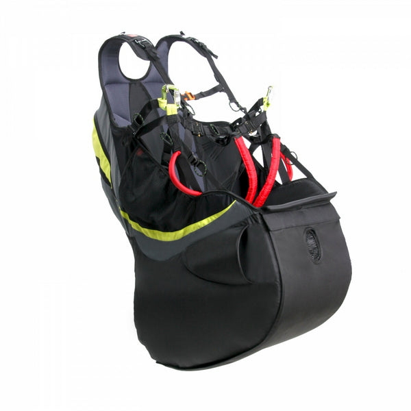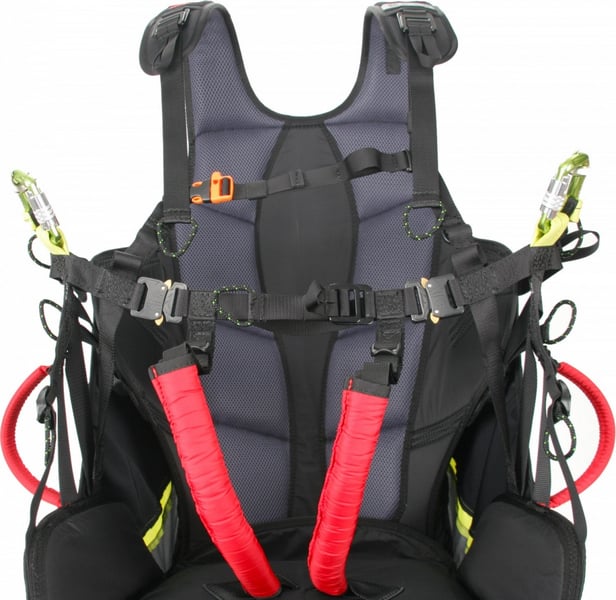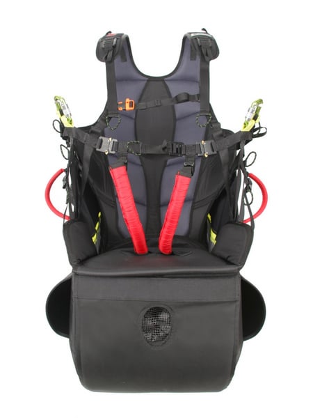 *Flybubble note: We weighed the Gin Fuse Passenger harness and found: Harness complete with carabiners and standard wooden seat plate: 4132g. Standard wooden seat plate: 922g! Harness with carabiners but no seat plate: 3210g. Accepts Gin carbon seat plate size L: 278g. Seat plate weight difference: 922g - 278g = 644g! Harness complete with carabiners and carbon seat plate: 3488g.