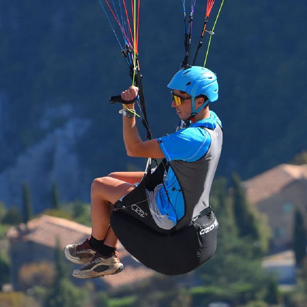 The OzAir weighs only 460 grams, is certified at 31.7 gmax. peak, and is quickly inflated prior to launch, providing protection even when navigating technical take-offs.