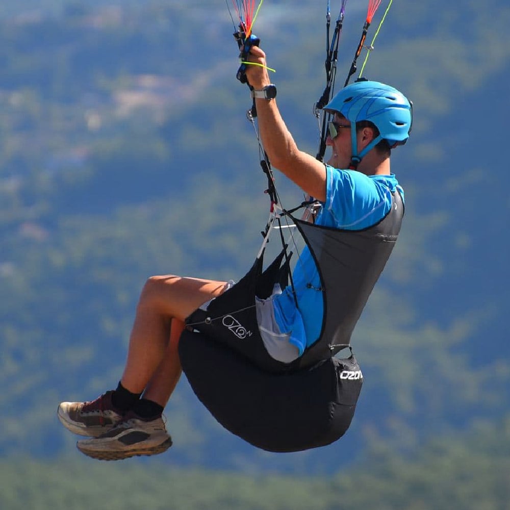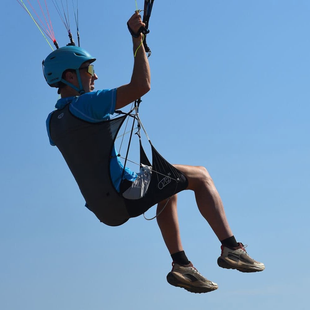 I like how compact it packs, the ease of use with the possibility to open up the legstraps (easier with skis or crampons on), and how smooth it is from standing to sitting. Its stability and comfort in flight lets me enjoy even longer flights, and still enjoy the fun handling of my glider.