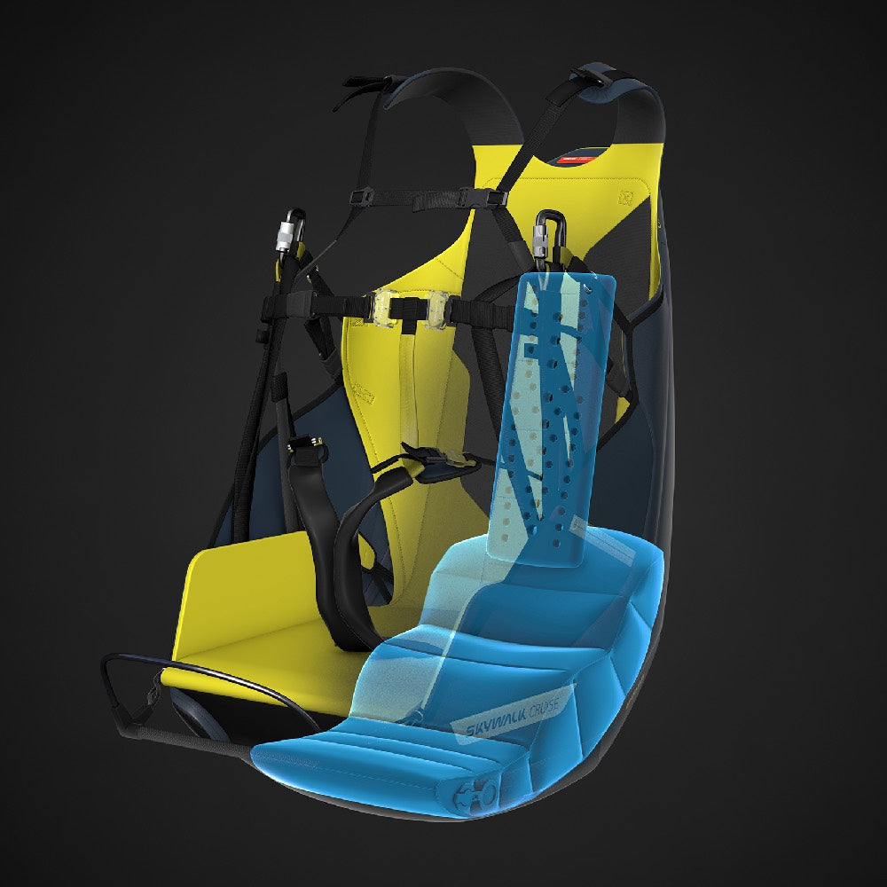 Weight and packing size are unrivaled for a harness of this type and features! Weighing only 3,5 kg, the complete flying equipment fits into a 90 liter backpack and is therefore ideal for your next flying vacation. Thanks to its robust construction, the CRUISE can also be used on the dunes. No matter what you plan to do – with its innovative detailed solutions, the CRUISE will convince you the first time you try it!