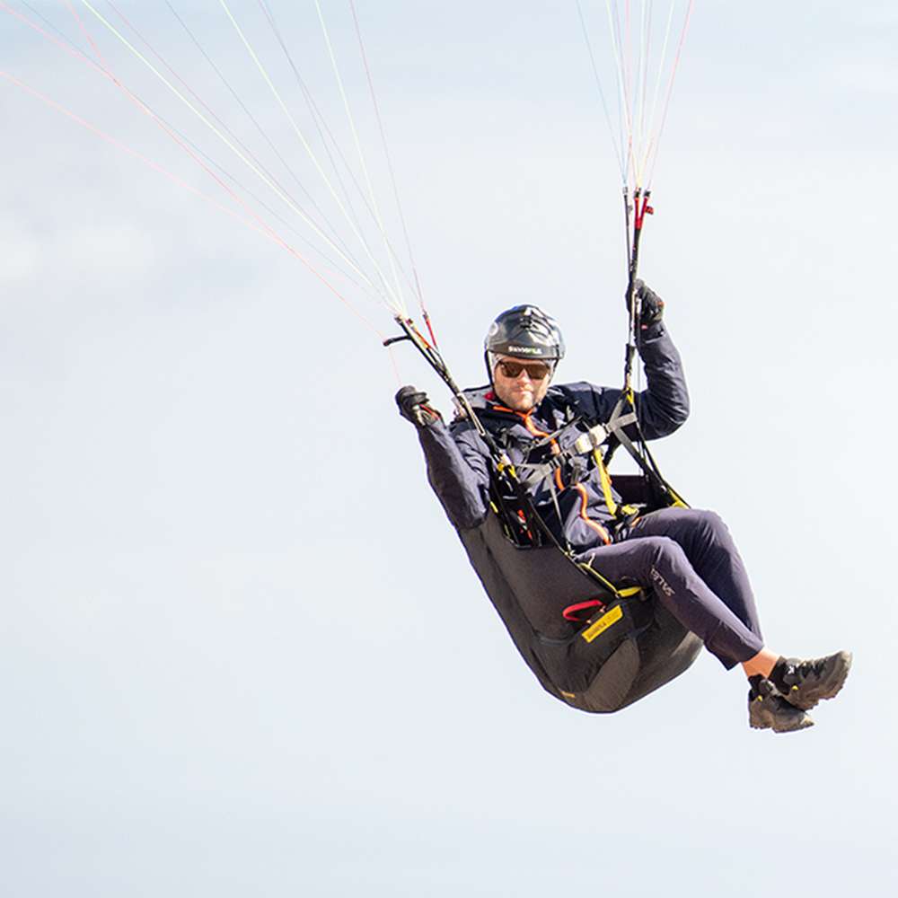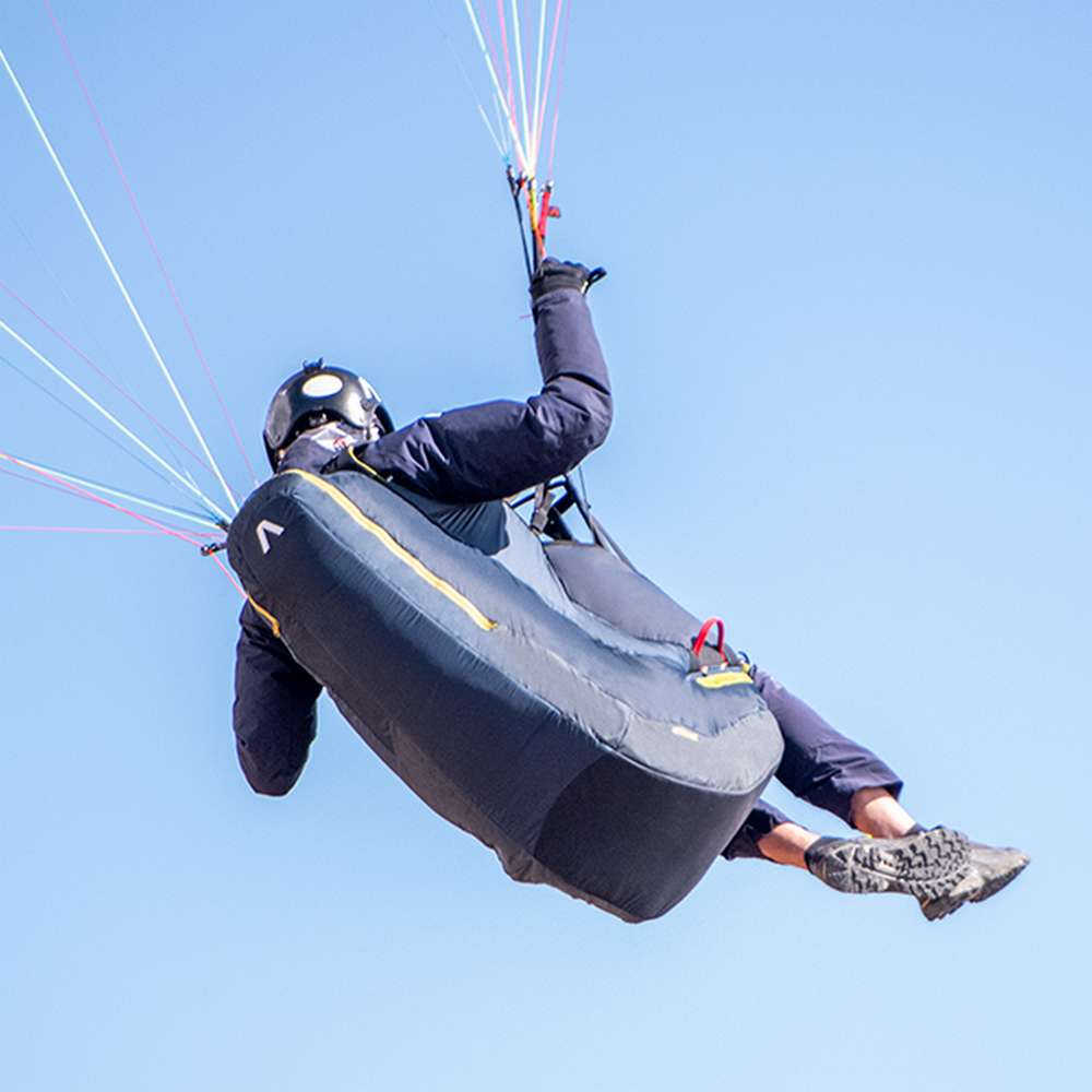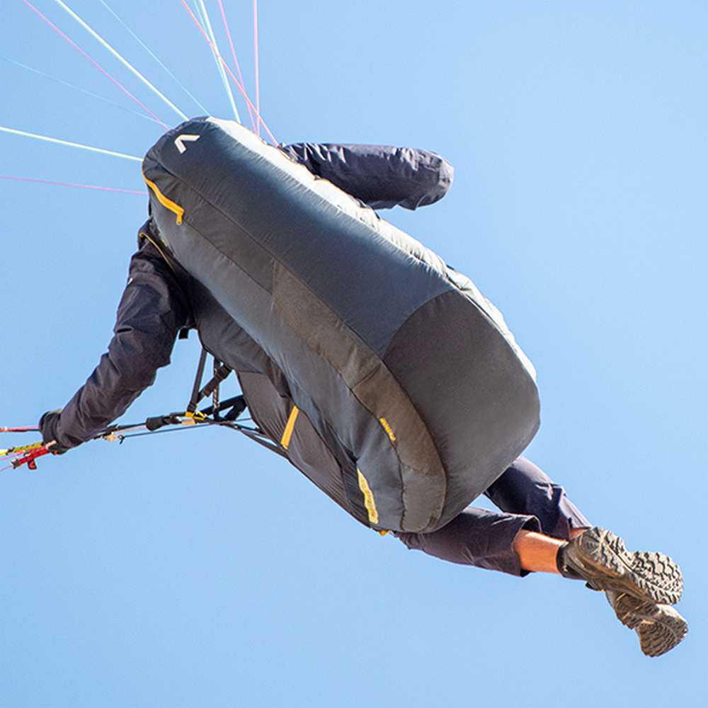 The structure ensures an exceptionally high level of comfort during flights, is very user-friendly and, thanks to the PERMAIR protector in combination with the SAS-Tec back protection, offers maximum safety. The ergonomic seat shell encloses the body perfectly and thus enables a comfortable sitting position – even with longer airtime. The T-Lock system promises stress-free and effective ground handling sessions. The adjustment options are designed in such a way that the seating position can be changed at any time during the flight, and the agility can also be adjusted using the stabilizers.