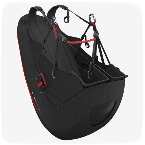 As a harness the PROGRESS 2 is just as comfortable and easy to deal with on the ground, due in part to the flexible seat surface and a reserve stowage near the body’s centre of gravity. This results in a previously-un-thought-of freedom of movement, and harness geometry also makes it easy to slide back into the harness after takeoff.