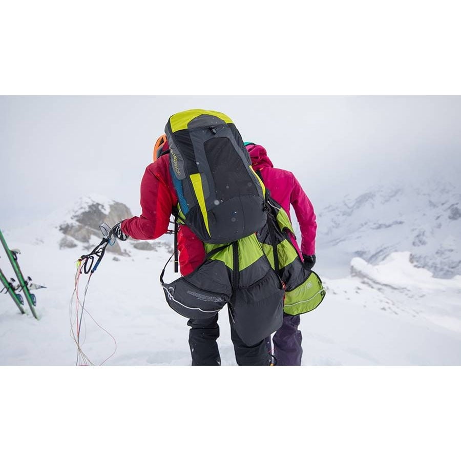 This ultralight tandem pilot harness is intended exclusively for extreme Hike and Fly use and has no protector.