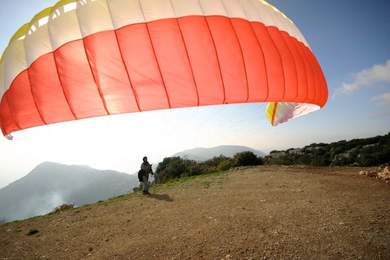 We know that one of the most important attributes of a wing of this level is the ease of launch - if you're finding it hard to get off the ground you'll get less time in the air, and soon get frustrated. With this in mind we've spent a long time working on building in exceptionally forgiving launch and ground handling characteristics into this wing; the Gecko climbs overhead with a very smooth motion and has no tendency to overshoot, no matter how hard and aggressive you are with it. Even if the glider comes up off to one side it's very easy to correct and continue with the launch. The most important attribute in a wing of this class has to be security and stability. By bringing the centre lines together and reducing the amount of roll we've made the Gecko feel incredibly secure, even to a novice. Internally we used an unusual box construction within the wing to give greater stability at the front of the wing. The A's and B's are closer together than normal so the profile is thicker and more stable than usual. This make the leading edge feel like a rigid box and makes the wing more stable and resistant to collapse. Even if you pull too hard on the A's during the launch the glider won't collapse, and if you hang on the B-lines the glider just carries on flying, it won't stall because of this feature.