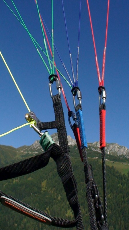 These lines are an ideal compromise between reduction of drag and durability, and as it is only the lines next to the wing that are microlines they are unlikely to come in contact with the ground avoiding any deterioration of the microlines. All the middle and lower lines are wear resistant sheathed lines.