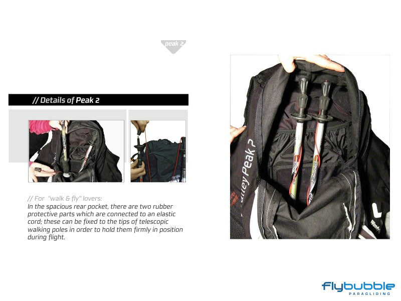 - Roomy back pack with two mounting plates for the safe attachment of two telescopic trekking poles