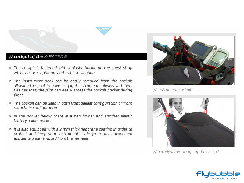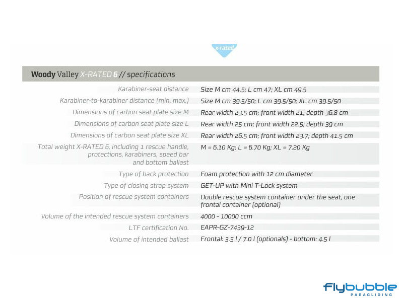 X-Rated 6 Is in full compliance with the LTF protocol. Thanks to the use of lightweight and high performance materials, as well as a high level of design, X-Rated 6 is the most complete, lightest and well equipped harness on the market.