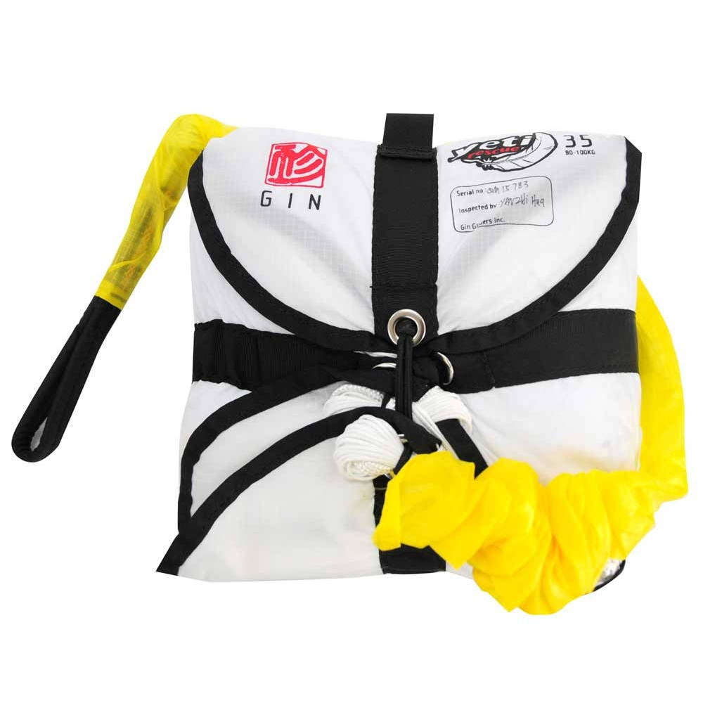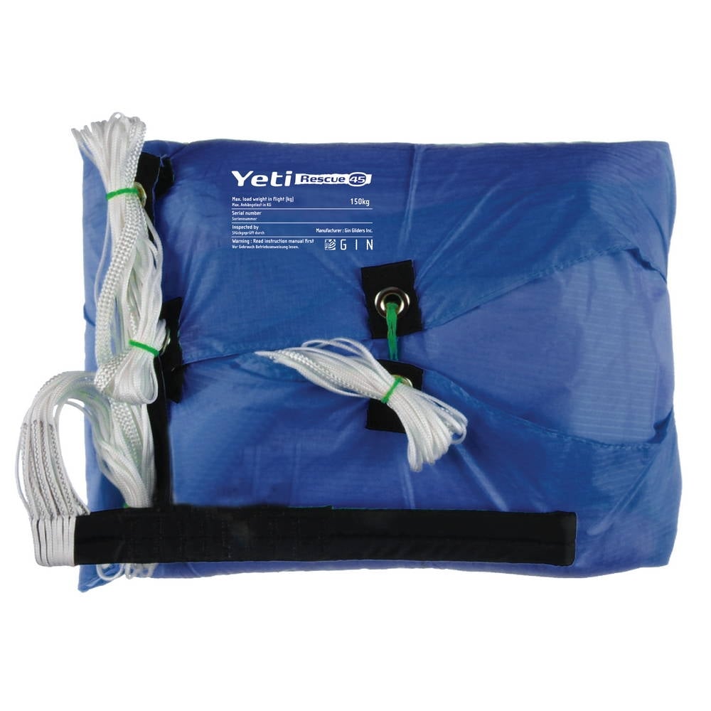 The GIN Yeti Rescue paragliding and paramotoring emergency reserve parachute is—like its competitors—light and compact, but it offers 40% more surface area.