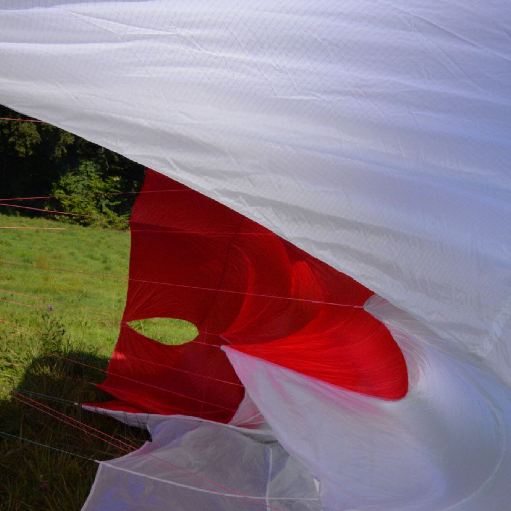 Even at its featherweight, the X LITE makes no compromises on safety. The panel structure forms a new, flatter arch, resulting in improved stability and a smoother descent. The assembly of the different parts of the parachute forms a "spider's web" whose role is to redirect stress towards the edges of the parachute to dissipate energy and avoid the accumulation of force on a single point. This more robustassembly leads to a selection of Fabrics lighter parachutes, while maintaining High safety levels.
