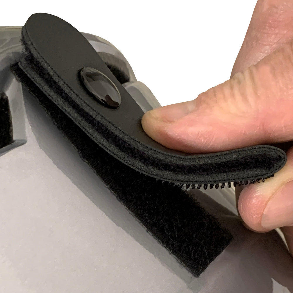A strip of self-adhesive loop fastener tape is applied to the back of the helmet to which the goggle retainer can then be easily attached (and removed).