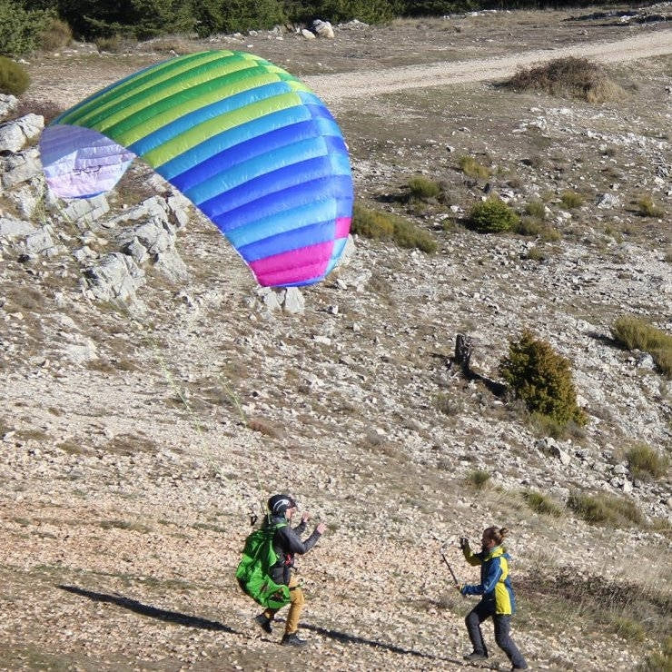 The SEED is BGD's affordable premier training paraglider, made for ground-handling only. The SEED was developed from the EN-B EPIC, and acts and feels like a full-size paraglider. It is made from durable 50g cloth and has three risers. It’s a fun accessory for parawaiting at take-off, practising kiting, or just goofing around like Spiderman.
