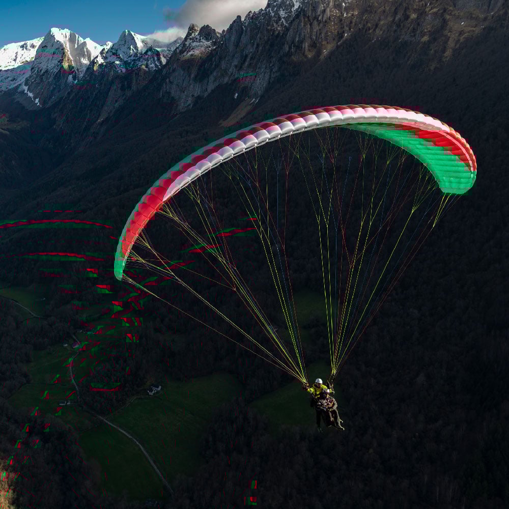 The Fuse 4 tandem improves further on the characteristics that professionals have come to know and love about the Fuse 3. Top speed has been increased, the handling is even lighter and the take-off is even easier. The wing has excellent energy retention and useful performance in climbing and gliding.