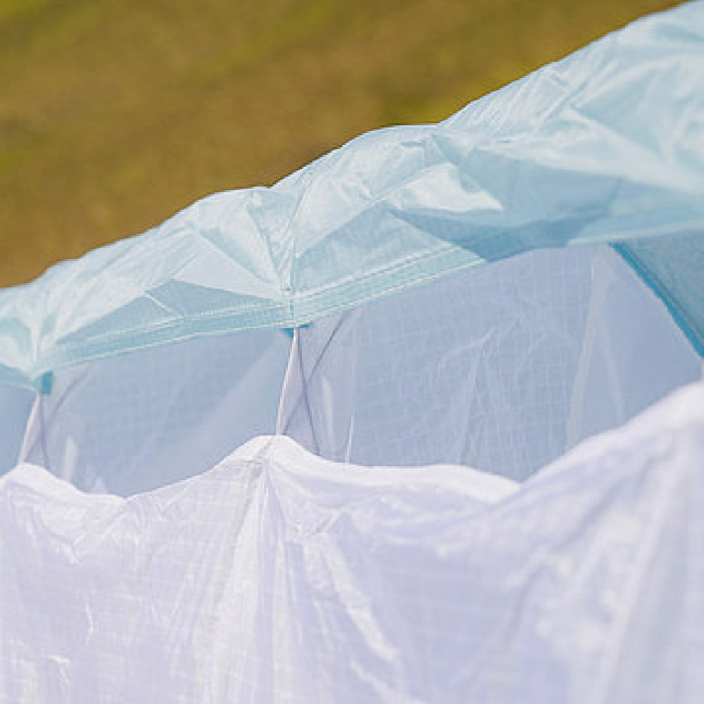 Flat profile nose. Anyone who tries to fold a piece of paper around a ball will notice that there are always creases. The nose profile of a paraglider is the same - the sail cloth has to adjust to both the profile and ballooning effect (cells are round, not straight). Double 3D Shaping uses additional seams to reduce creasing and therefore increases the performance of the wing.