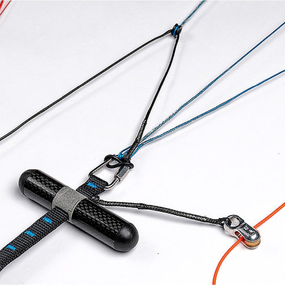 Efficient right down to the risers. The risers of the CODEX are very manageable and are made of 12 mm wide, Kevlar-reinforced webbing. The Height-Adjustable B-Handles (HAB-Handles) are known from the XENON: they are made of carbon and can be height-adjusted to five levels. This allows you to optimally adjust the position of the handles to your size and harness geometry. The individual adjustment of the B-handles enables more effective glider control in accelerated flight.