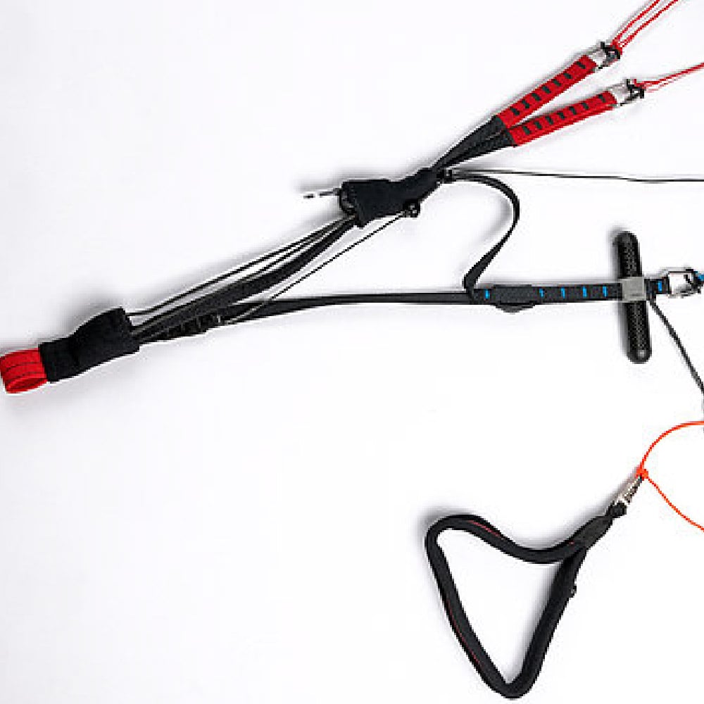 The height of the carbon handles on the risers can be adjusted to several levels. This allows ergonomic adjustment to upper arm length and harness geometry. To do this, remove both caps from the carbon tube, loosen the screw connection with a hexagonal nut, position the HAB-Handle at the desired height, close the screw connection and replace the caps.