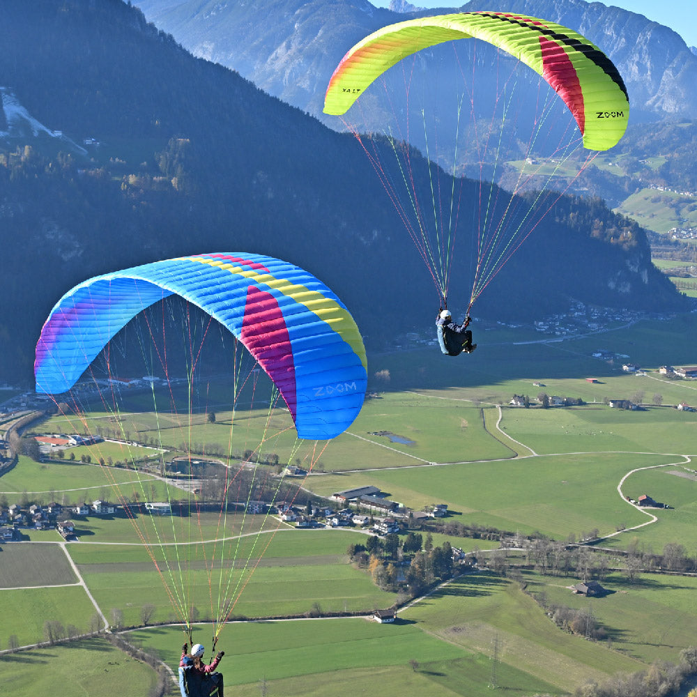 With the new ZOOM XA LT can cover a broad range of pilot’s demand. It comes with very light weight and is easy to pack and is therefore an ideal wing for Hike and Fly. With the XA well known and appreciated high stability in combination with its outstanding performance the XA LT is a perfect match for the first Thermal- and Crosscountry flights. Due to its sophisticated light wing design, the launch- and turnhandling could be even more improved. In summary the XA LT is a wing for many areas of flying. It covers all demands of a training wing, but is the perfect choice for the first wing after the training as well as for the first thermal adventures and Hike and Fly events.