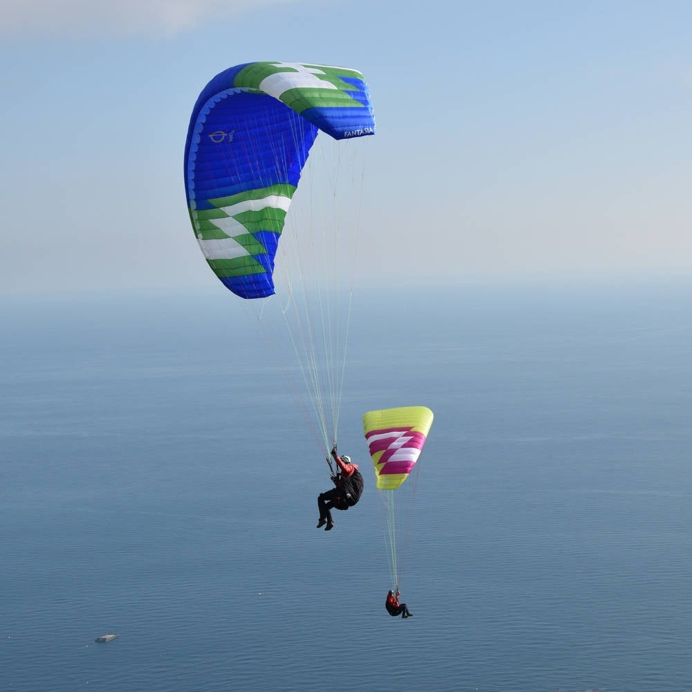 Apart from the extraordinary security and the extreme simplicity of the FANTASIA, it has some special technical features for this class, like the only 3 suspension levels over most of the span. We have also banished any Dyneema lines (as well from the brakes) in order to achieve better trim stability. Due to the spartan structure, the FANTASIA is very light even in the robust 30D / 20D mix.