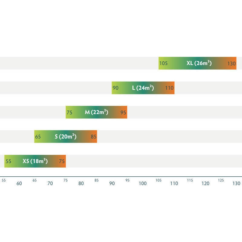 | SWR* (kg) | 50-75 | 65-85 | 75-95 | 90-110 | 105-130 |