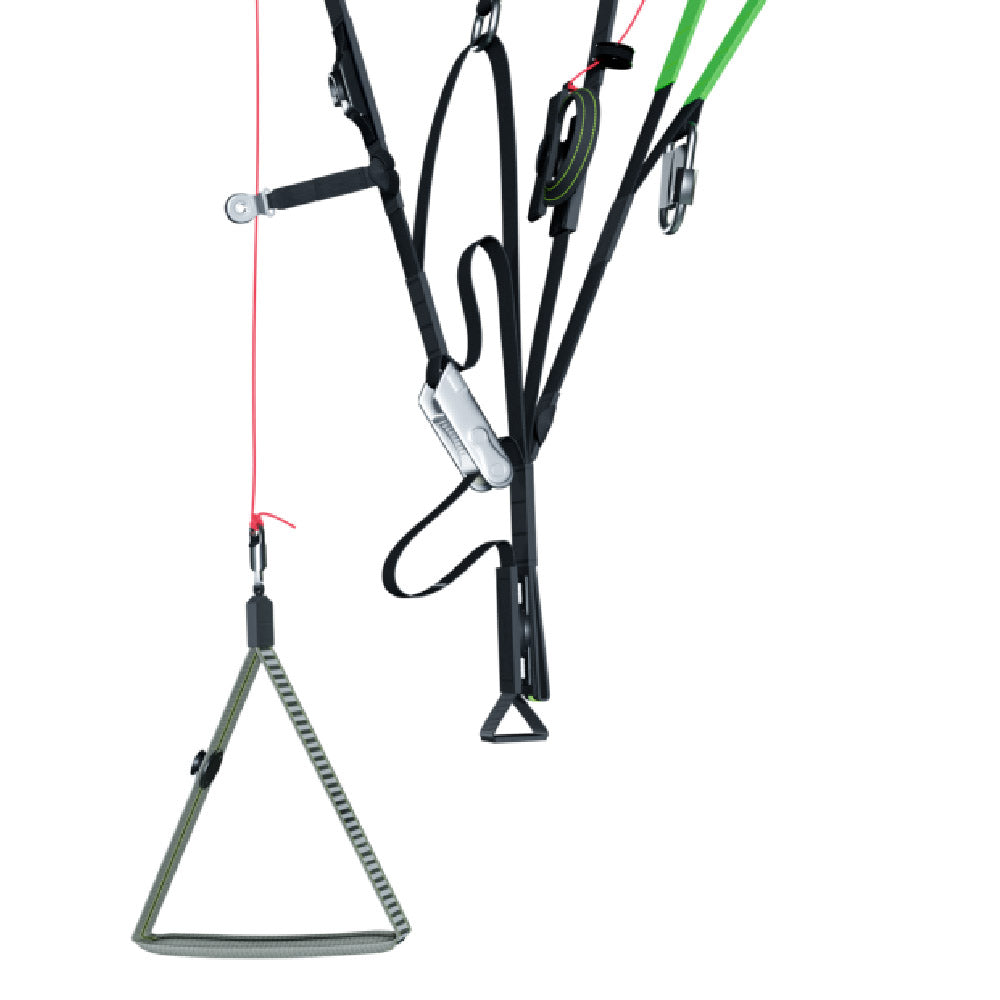The A-Assist System, which is an extra maillon on the A-riser, allows the pilot to attach the A-risers to the trike to keep their hands free and comfortably operate the brake controls. The pilot can adjust the optimal length to make the connection between the trike and the A-Assist System.