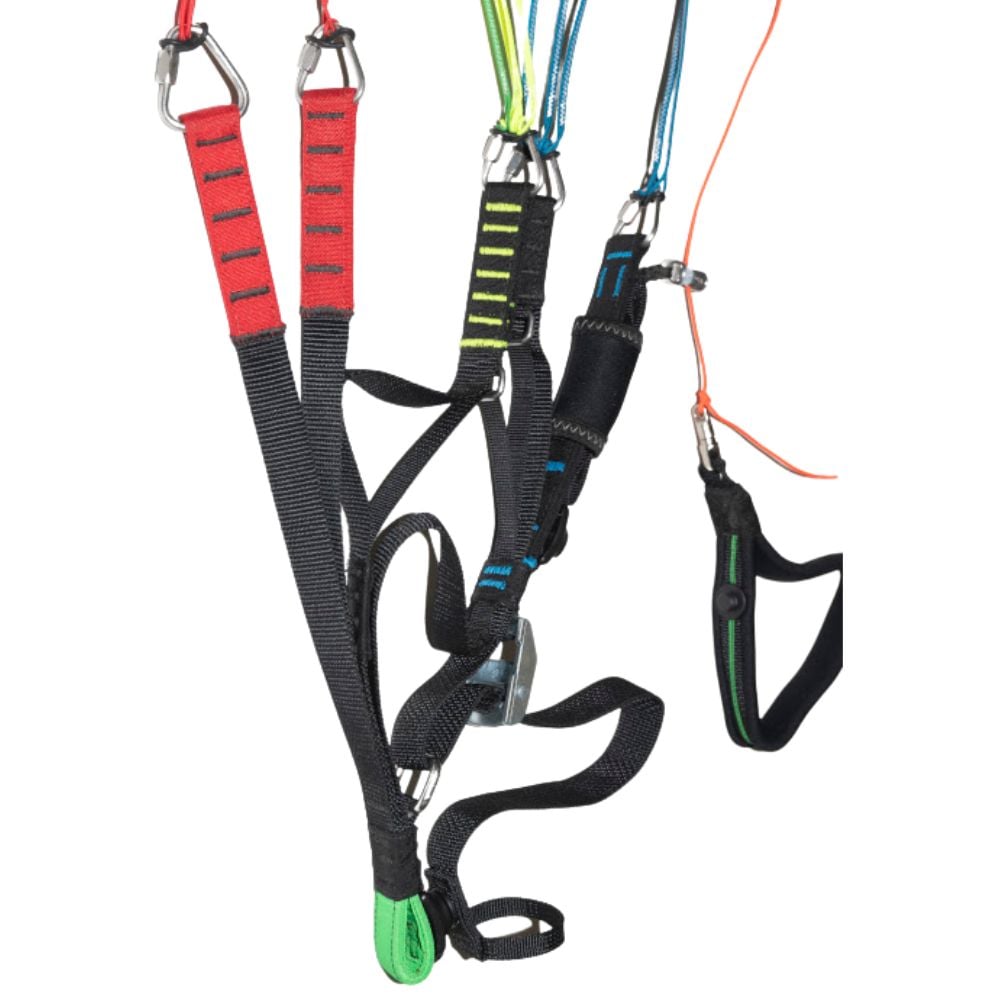 The 20 mm wide BION 3 riser features Fidlock magnetic buckles, allowing quick and practical fixation of the brake handle and trimmer strap. A clamp for seamless adjustment of the A3 main line ensures effortless holding of Big Ears.