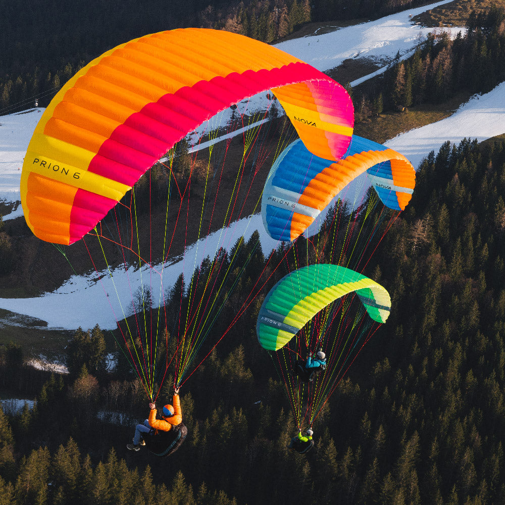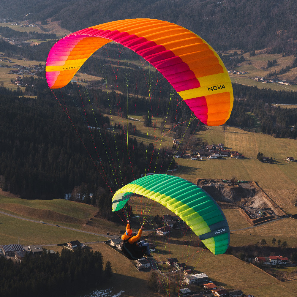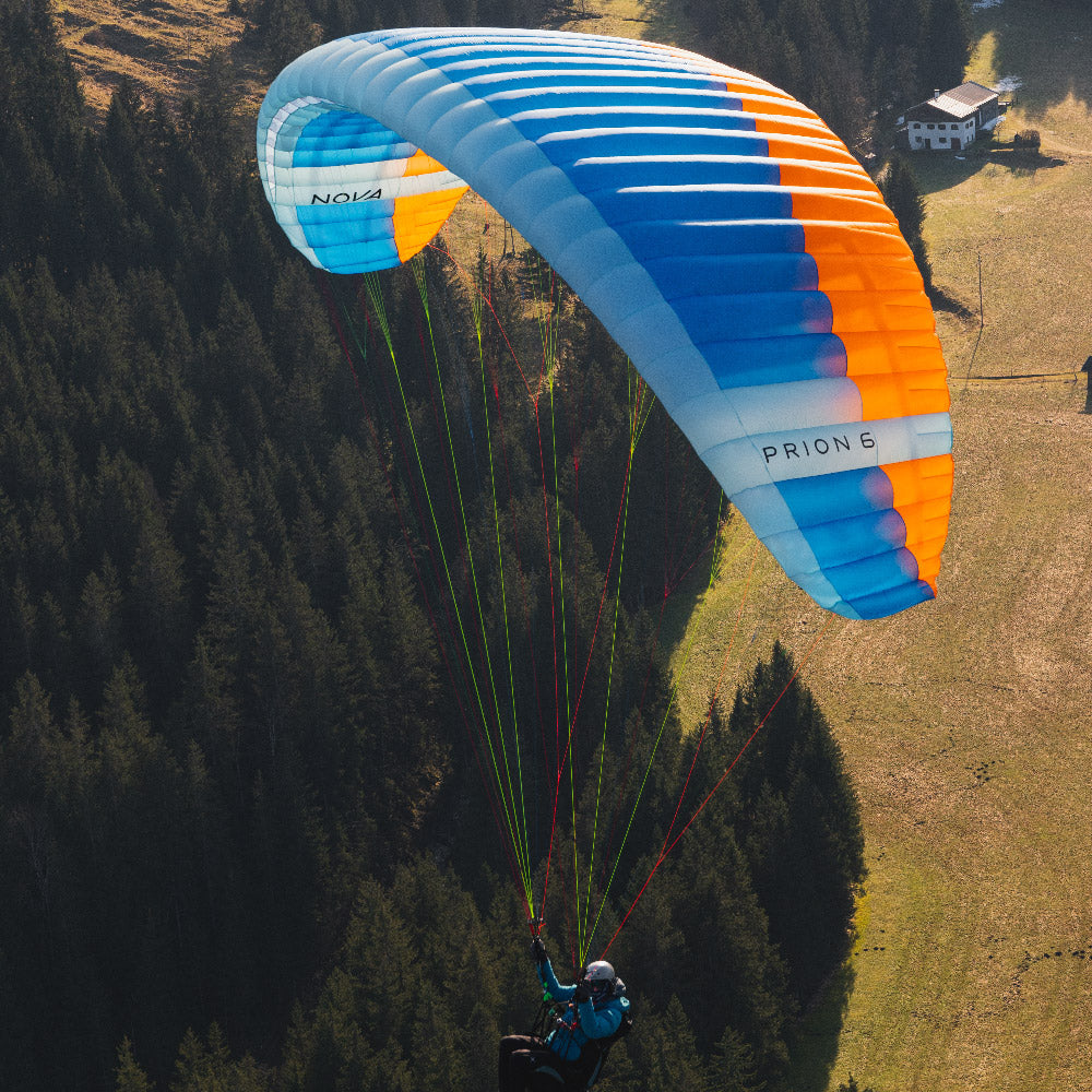Both wings are EN/LTF A certified and can be used for instruction. In direct comparison, the PRION 6 is less dynamic and therefore easier to fly than the high-end EN A AONIC. With the PRION 6, the focus is on the easiest possible introduction to paragliding, whereas with the AONIC, it is more on thermal and cross-country flying. If you want to start paragliding in the most relaxed way possible, Nova recommend the PRION 6.