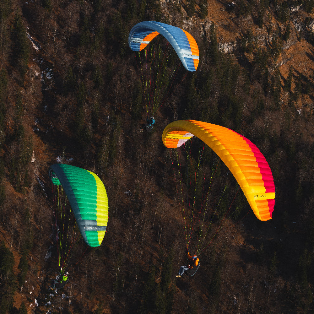 The PRION 6 (EN/LTF A – suitable for instruction) is a good-natured and extremely safe paraglider with easy launch and landing characteristics. It is ideal for pilots who are completing their training and are also looking for a safe, high-performance wing for their first thermal flights at their local site, or when travelling. Thanks to the overlapping weight ranges, there is a suitable size for everyone.