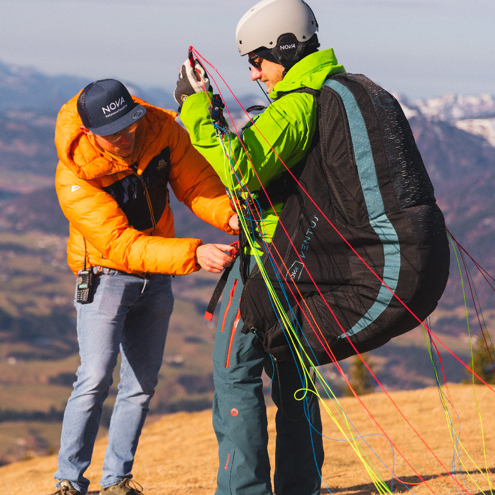 During the initial flights the lines are first subjected to load. This load induces a small degree of stretching and shrinking. These are not associated with the line manufacturers or the quality of workmanship - in the factory all NOVA paragliders are trimmed and pre-stretched to within a very low tolerance. To adjust this stretching or shrinking, Nova recommend that the wing is taken for NTT (NOVA Trim Tuning) after ten to twenty flights - after one year at the very latest. Generally, the line lengths remain constant after the first ten to twenty hours. To make full use of the NTT, NOVA encourages all pilots to have their wing checked after ten to twenty flying hours.
