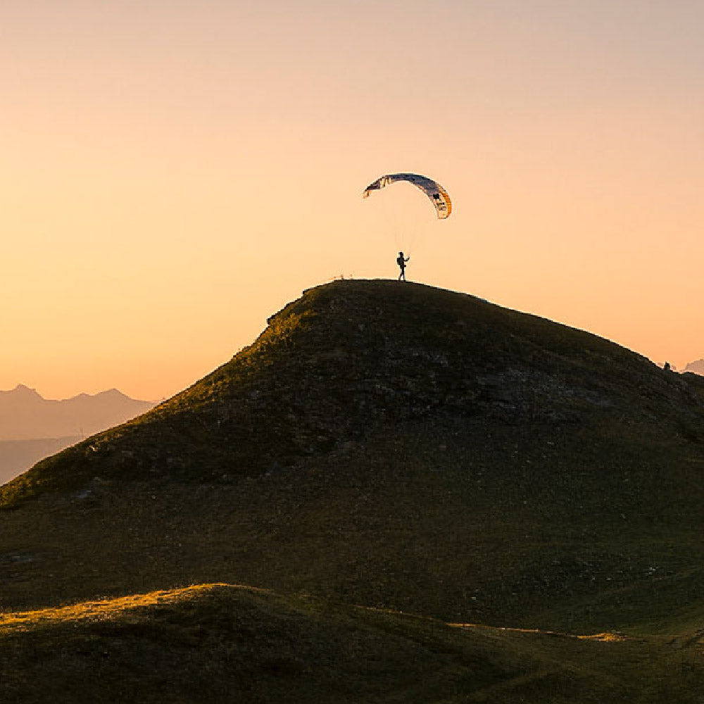 The PACE launches almost by itself. You don’t even have to take the risers in your hands. Just a slight impulse via the harness is enough and the canopy is immediately above the pilot. The ultralight wing rises very quickly, but stops on its own and does not overshoot. With only a few steps you are already in the air. Therefore, the PACE is perfect for launching on the smallest take-off sites as well as in very difficult terrain.