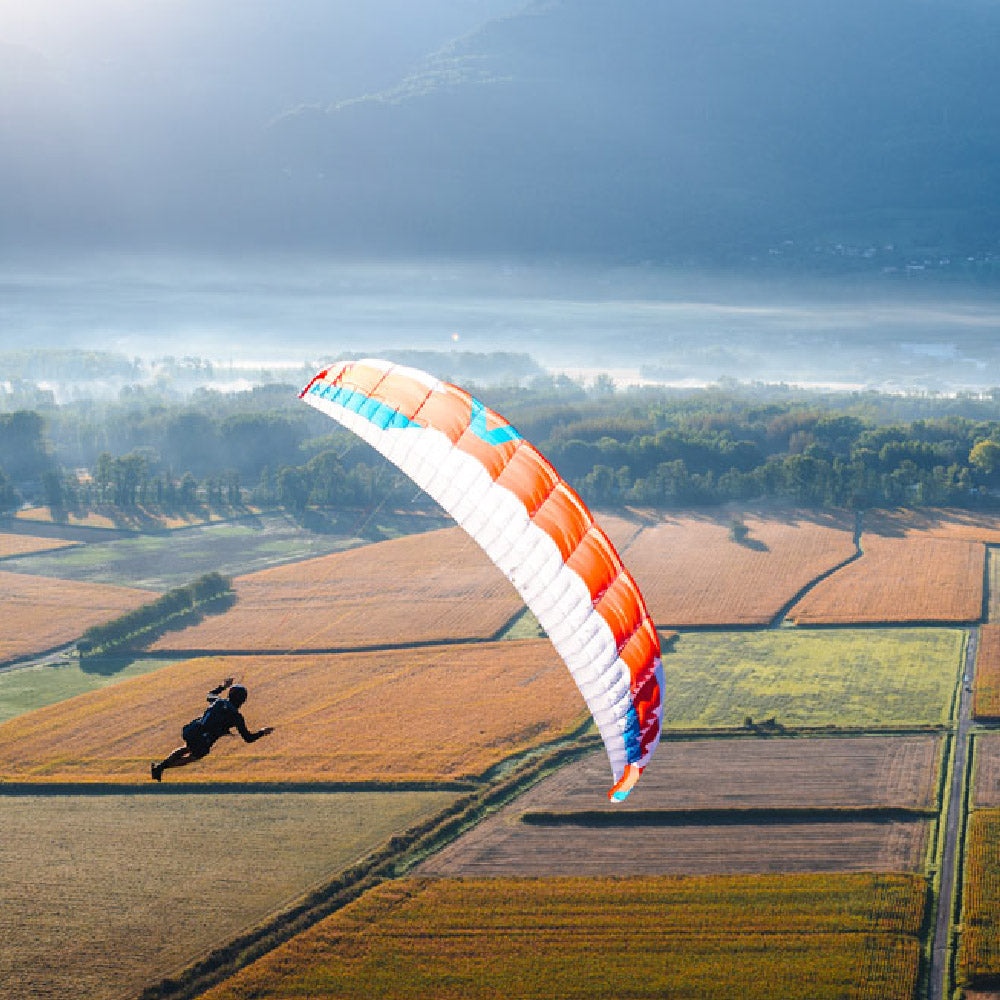 In the air, the PACE reacts directly to control impulses, flies very intuitively and with playful ease. The control pressure is very low. In turbulence, the design of the PACE offers extremely high resistance to collapses and exceptional inherent stability. The PACE stabilises itself and aligns itself again above the pilot when needed. As a result, there is hardly any pendulum movement during the exit of a spiral dive.