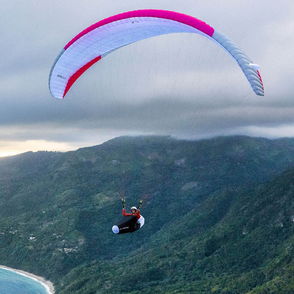 Flying in various different conditions including turbulence, Iota DLS is not the most feedbacky wing. With pilot demands relatively low in the High B class, stall point is very predictable and brake pressure light to moderate. With good climb rate, glide and speed, overall performance feels very good!