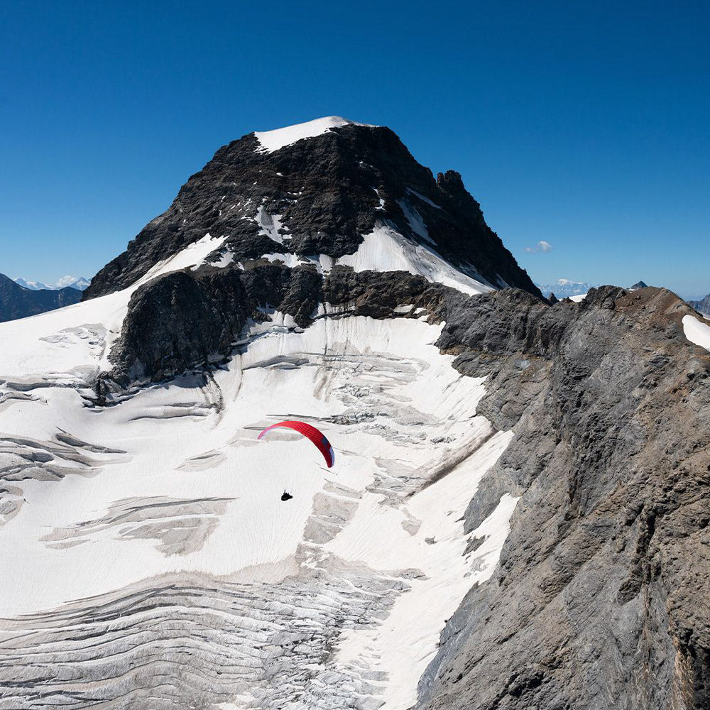 The new riser-integrated C2B system allows this 3-liner to be flown as if it were a 2-liner, which has increased comfort. A handle lowers the B and C-risers at the same time. These are connected through a pulley system to maintain the optimal shape of the profile. This allows the glider to be flown and steered without degrading its shape, even at high speeds.