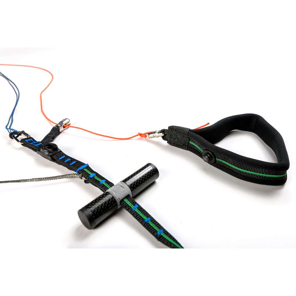 The so-called HAC handles (Height Adjustable C-Handles) are mounted on the C-risers. These permit a more efficient pitch control, usually only possible on two-liners. The effort required to apply them is so minimal, that even after a long flight they never cause fatigue. In accelerated flight, the HAC handles can be used to increase the angle of attack more quickly and sensitively than would be possible by releasing the speed bar. Additionally, asymmetrical corrections are possible, e.g. for a change of direction. In the end, the C-steering means it is possible to fly faster, more efficiently and in a more relaxed manner. At trim speed, if the HAC handles are pulled down about 20 cm, a stall occurs, but the pilot will know this in advance through pulsating feedback on the handles. Well before the stall, performance is noticeably reduced. It is therefore not advisable to permanently slow down the MENTOR 7 Light below trim speed.