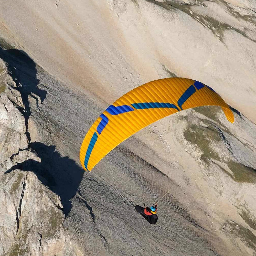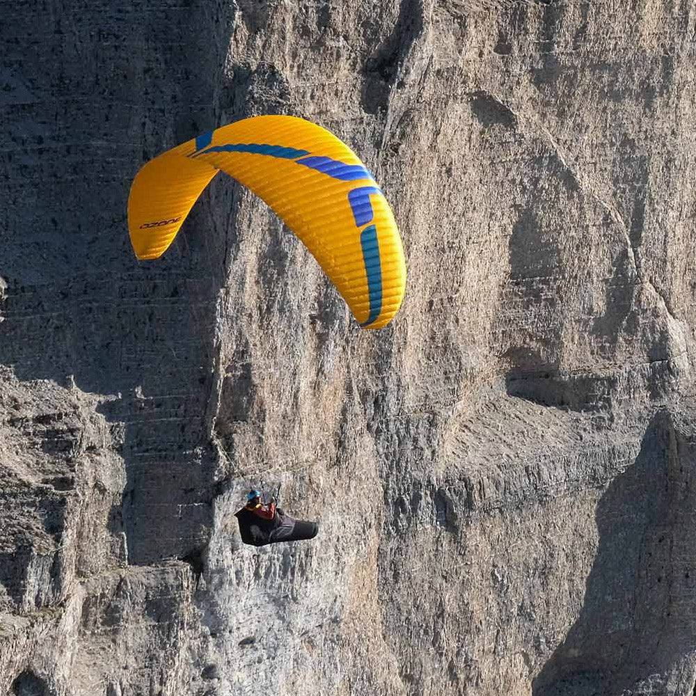 In the air, a slightly higher top speed and more dynamic feel resemble a supercharged Rush, more similar to a Delta in terms of handling excitement. The brakes are precise in the first part of the range and highly effective in the second. Climbing efficiency is aided by the strong chord structure and excellent sail cohesion.