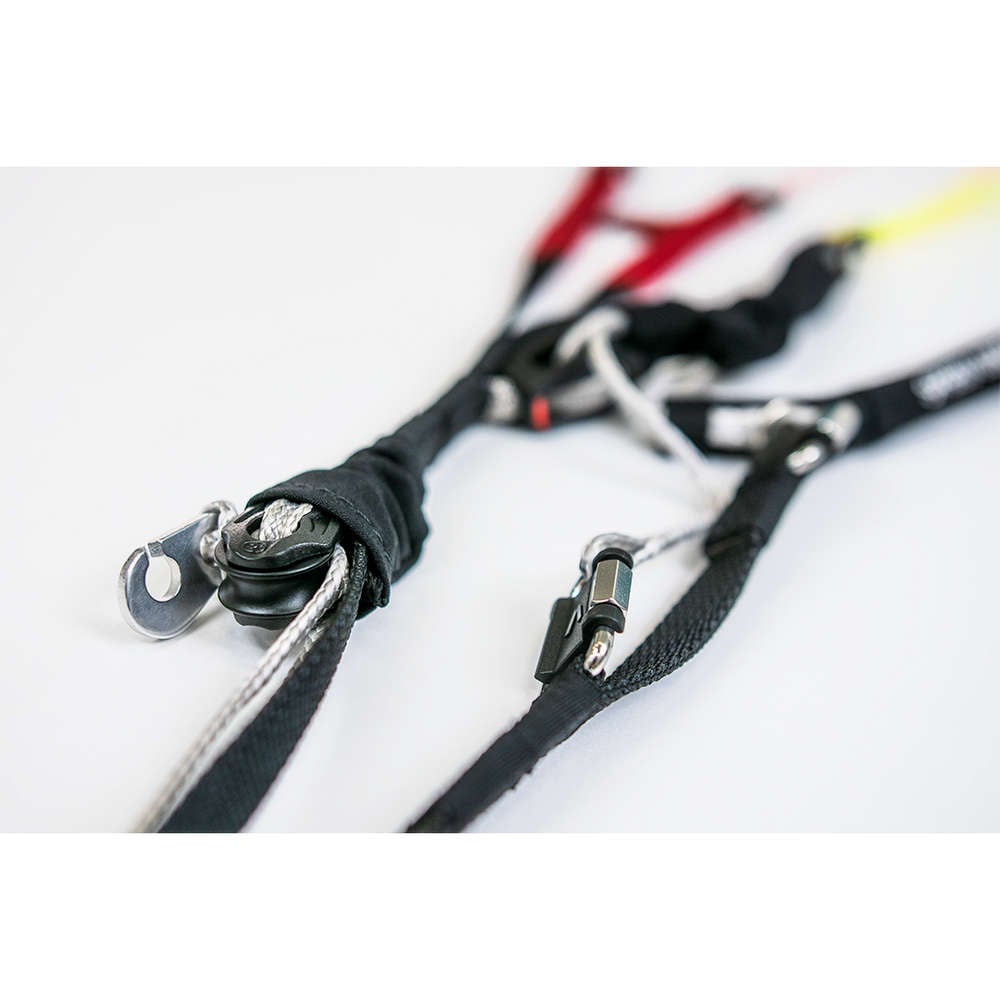 To simplify launch preparations, we have placed a high value on clarity.The SPEED CONTROL’s Dyneema bridle lines are wrapped in a neoprene cover so that nothing can dangleand get tangled up during ground handling.