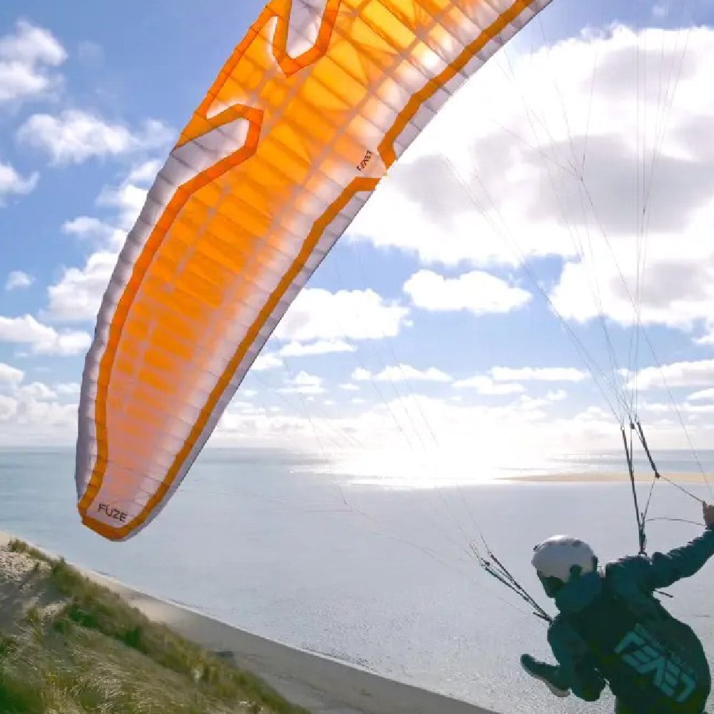 The FUZE is well-suited for diverse flying, such as carving coastal and alpine runs, cruising dunes, performing speed flying maneuvers, or navigating challenging terrain previously limited by glide capabilities. Its design and quality materials provide reliable strength with a performance-oriented approach making the FUZE a soaring machine.