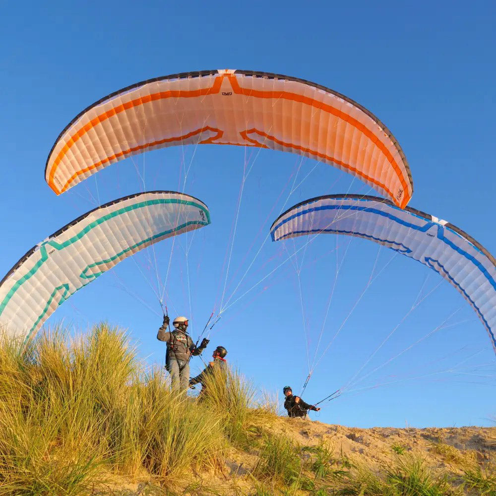 Caution! Due to the reflex profile of the canopy, it behaves differently if you were to experience a collapse. The FUZE is NOT to be flown in strong turbulent conditions or used for thermal flying. Active and responsible piloting is ALWAYS mandatory.