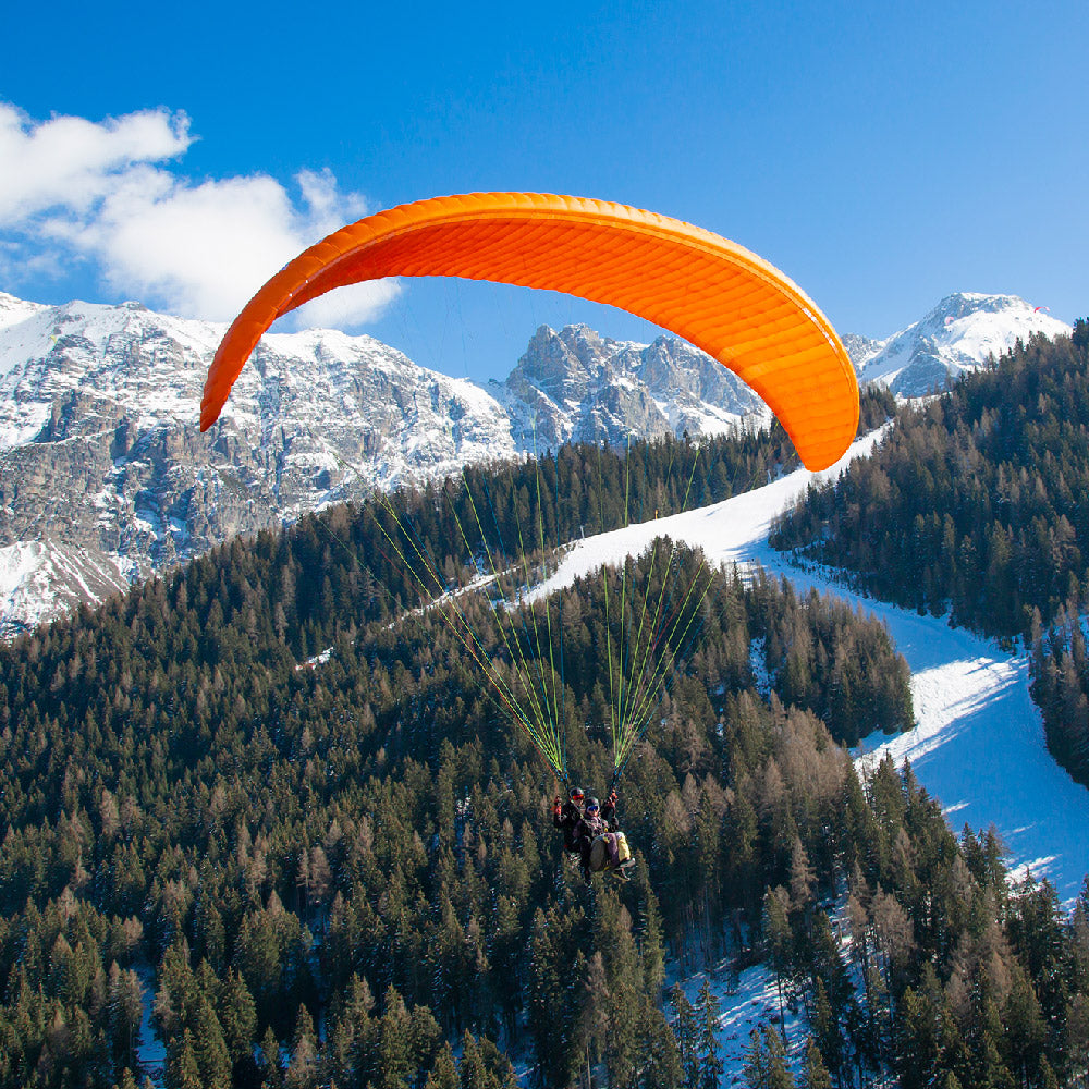 Once in the air, I always flew with no less than 3-4 cm open trimmers. The wing flew completely stable at all times in this position, and it felt that I had better turning authority than if I had used the closed trimmers. The manual states this closed trimm position is to be used only with heavy loading in weak conditions to scoop any lift on the way. The brake force is on the heavy side of all three wings mentioned here. There is some force needed to steer the wing, and there is a special point in turn/brake pull where you need to go from progressive pull to a sharper, stronger pull to get the wing banking. Once you understand that, the Bishop turns quickly in all conditions. Especially when you need to get up on the ridge or turn in a strong, tight core. Climbing is bliss. In a group of pilots flying all kinds of tandem wings, I never ended up being lower than the rest; in a thermal, I was topping most of the time. In turbulent air, I was happy to have this Triple Seven feel, where the wing remained solid through the bumps. Bigolden and Dual tend to be squizzed in the centre quite a lot, bringing all kinds of information to the passengers looking up at what is happening with the wing. The Bishop remains solid here, and the input needed for active flying is relatively short, like flying a solo wing.