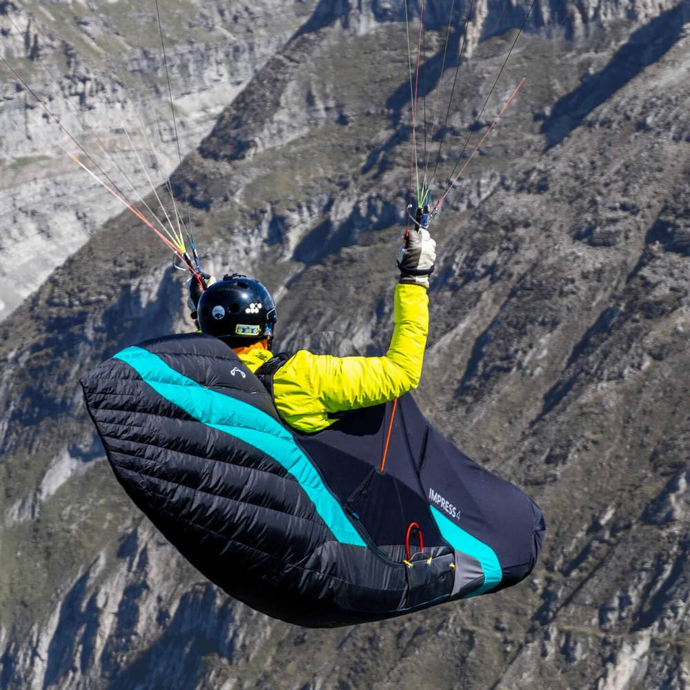 The IMPRESS series heralded a new era fifteen years ago and made the reclining harness accessible to a wide section of the public. Incidentally, the initial product was the work of a young Chrigel Maurer. Success did not have long to wait, and the IMPRESS quickly spread within the paragliding world. We continue this tradition with the IMPRESS 4. It is the first dedicated High-End cross country harness with aerodynamically optimised tail spoiler that will fold away in any normal paraglider rucksack. It is intended for leisure cross country pilots up to the champion XC and competition pilot.