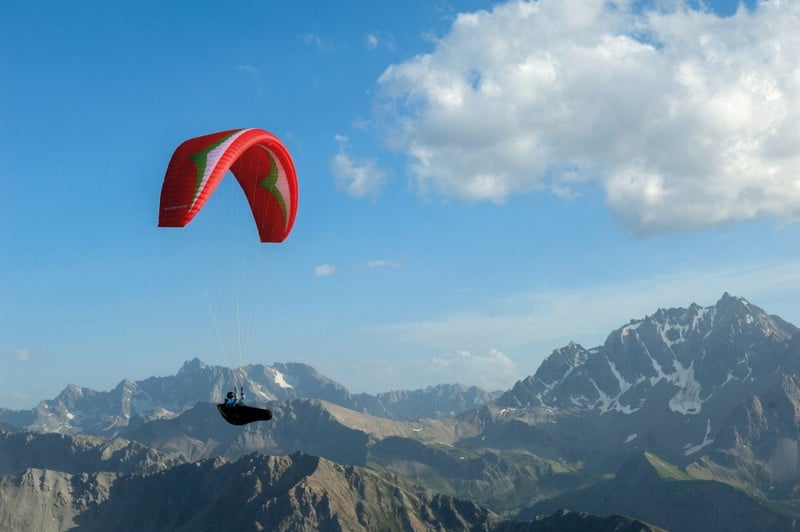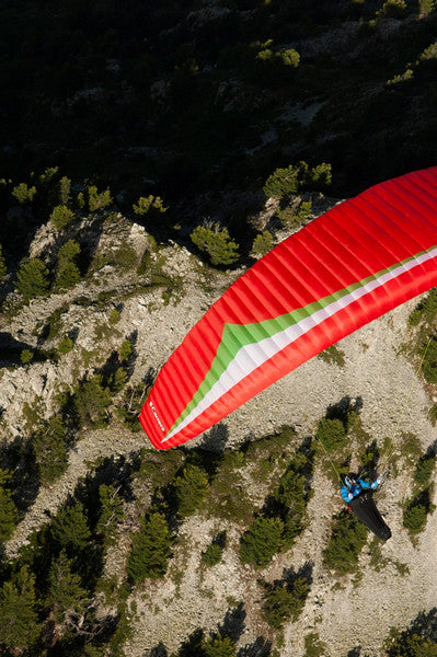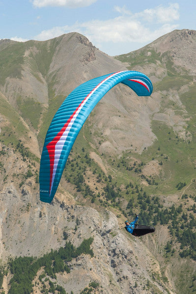 Everything about the Carrera is designed with maximum efficiency in mind. Attention to detail during design and manufacture has resulted in an exceptionally clean sail. The wing inflates with the gentlest of pulls and settles above the head with the minimum of pilot input. The handling is precise and progressive with a "gentle-but-firm" feel, ideal for long thermalling flights. The wing gives informative feedback in thermals and transitions, helping you pick the best lines. Yet at the same time, it damps out turbulence very effectively, allowing you to concentrate on your next move. Acceleration is smooth and progressive due in part to split A and C risers, helping you glide to the next thermal as efficiently as possible.